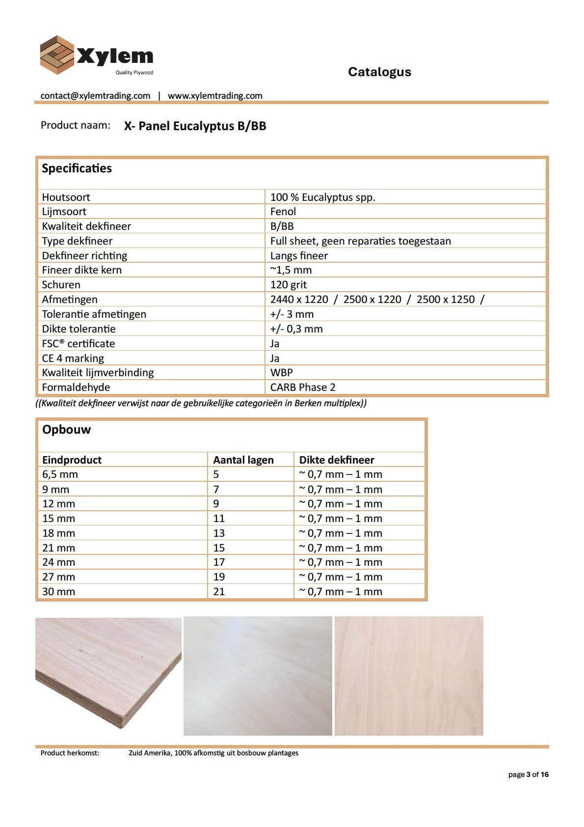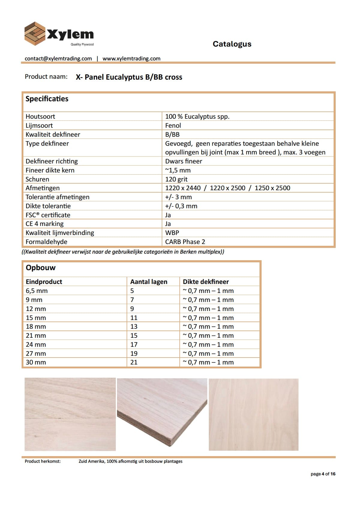 Our focus is on offering high quality products to the European market. Achieving the utmost satisfaction of our customers is our main goal. The plywood panels we offer have an bonding quality (636-3 exterior applications), have a very uniform composition and are available in different grades of face veneer. Discover the full range of our products with specifications by downloading our product sheets today.